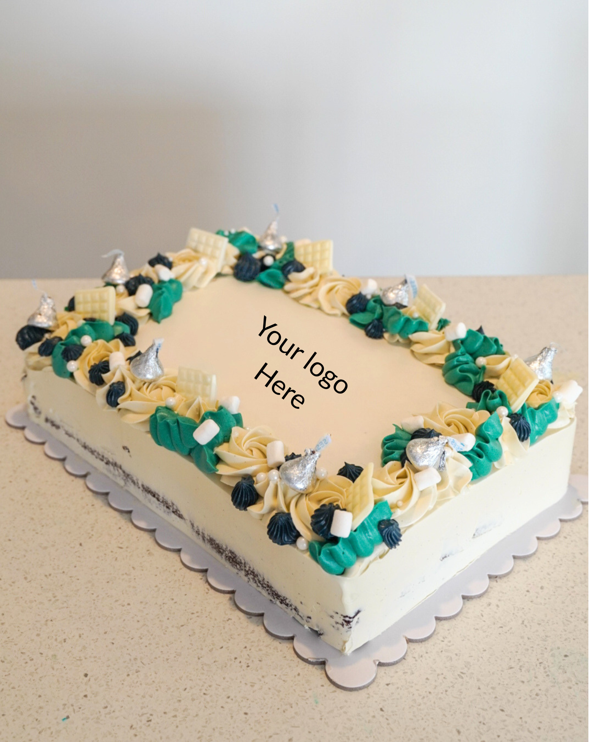 Your company logo or art work, will be displayed on top of the cake in edible ink and decorated in colours to compliment the design.